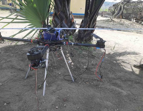 Une unité des FACA a été envoyée à sa recherche, et vers 9 h 50 le 21 janvier 2023, un drone équipé de lanceurs de mines improvisés a été trouvé, d’où quatre mines ont été larguées sur l’héliport. La cinquième mine est restée coincée dans le support du drone et n’a pas été larguée.