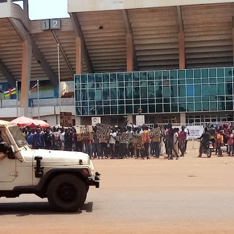 Plusieurs milliers de jeunes membres de l’Association des taxi-moto de la ville de Bangui, très en colère, ont pris d’assaut ce matin l’entrée du Complexe sportif Barthélémy Boganda pour dire non aux soutiens de la Minusca à Ali Darassa et d’exiger son départ immédiat du pays.