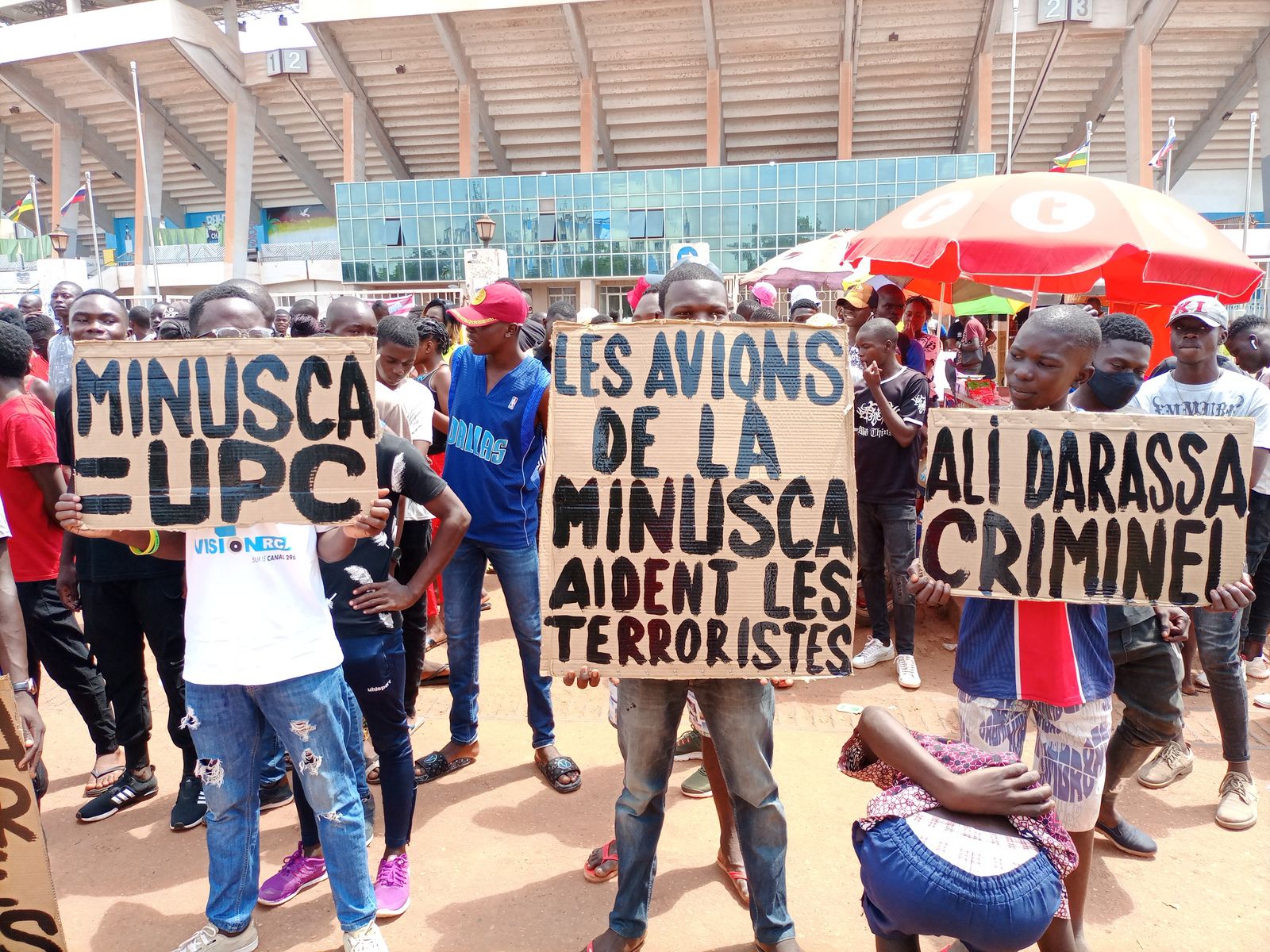 L’on peut lire sur les cartons « MINUSCA=UPC, POURQUOI LA MINUSCA SOUTIENT L’UPC, LES AVIONS DE LA MINUSCA AIDENT LES TERRORISTES » etc. Tout ceci n’était l’expression de ce que constate ces jeunes selon l’un d’eux monsieur MBETIYANGA Junior Abdias « Nous sommes là pour dire non aux désordres de la MINUSCA afin que la paix retourne dans notre pays ».