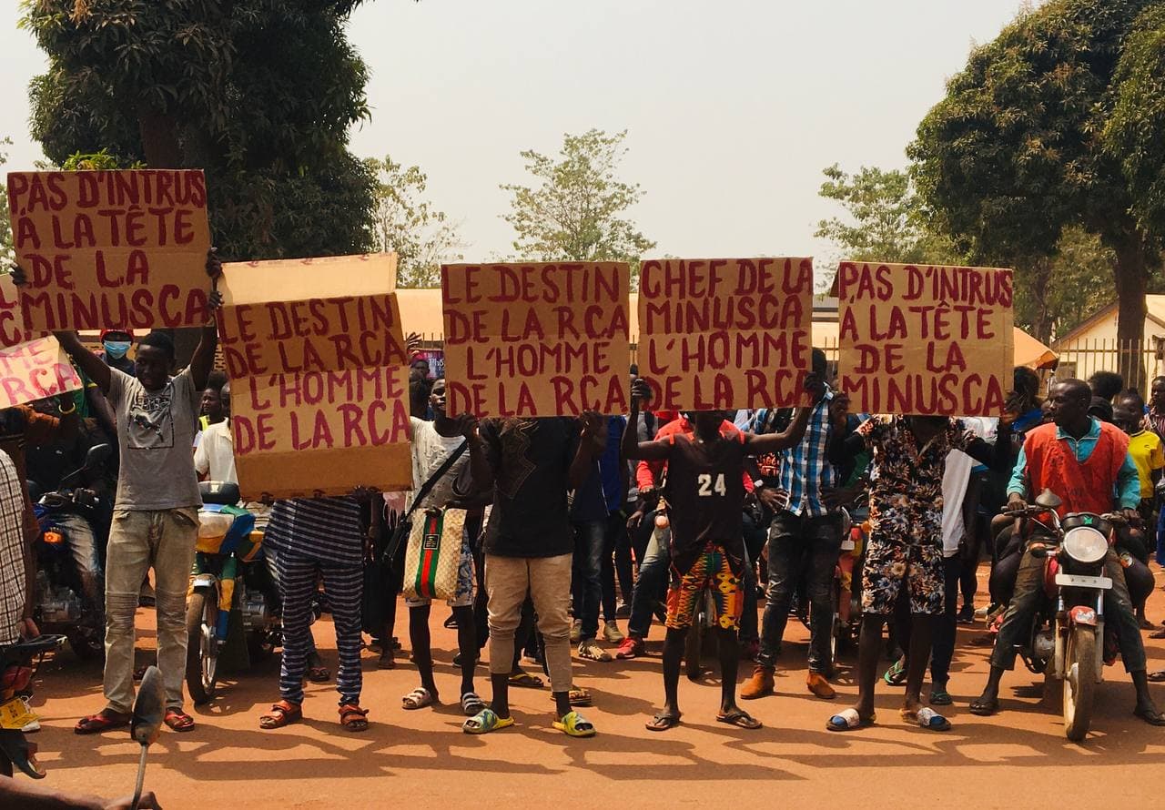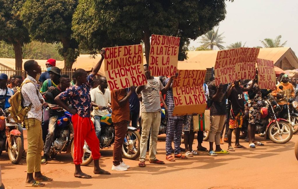 Sur des cartons brandis par ces derniers, on peut lire, «chef de la MINUSCA , l’homme de la RCA !» «Pas d’intrus à la tête de la Minusca !» «Le destin de la RCA, l’homme de la RCA !»