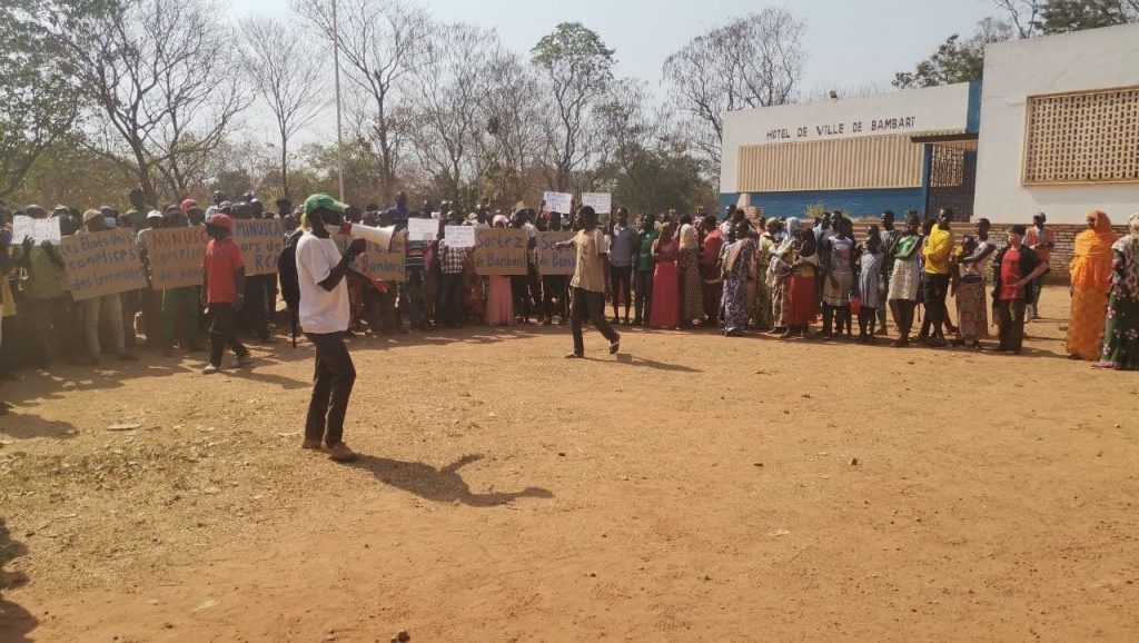 Selon les informations des sources fiables, aujourd`hui, le 10 février 2022, les habitants de Bambari ont organisé une manifestation devant la mairie de la ville. Les habitants de Bambari sont mécontents des actions de la MINUSCA, ils les accusent de collusion avec des groupes armés et exigent le retrait de la MINUSCA de Bambari.